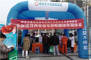 以西安中大耳鼻喉医院为代表的西安市多家医疗机构的100多名医务人员走上街头,为上千名市民进行健康查体和疾病宣传。